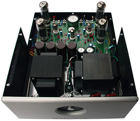 I'm using their M-180 monoblocks in my main system (shown here with the cover off).