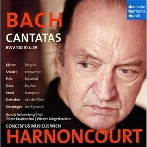 Technically this isn't a re-issue but another heartening sign that Sony (through its Deutsche Harmonia Mundi imprint) has started to put more thought into their classical releases. Nikolaus Harnoncourt in new recordings of three Bach Cantatas (BWV 140 "Wachet auf, ruft uns die Stimme", BWV 61 "Nun komm, der Heiden Heiland", and BWV 29 "Wir danken dir, Gott, wir danken dir". Harnoncourt recording Bach is an event; when he works with soloists like Christine Schäfer, Bernarda Fink, Werner Güra, Christian Gerhaher, and Gerald Finley—all among my very favorite singers—even more so. The result is, not surprisingly, a very fine, notable new Bach Cantata CD that dedicated Bachians would not want to miss. What turns this from "very fine" to "best of the year" is this twist, though: Sony licensed and includes the same three cantatas from Harnoncourt's Alte Musik/Teldec cantata cycle and allows direct comparison between his Bach from 30 years ago and what he does now.