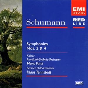 Since Tennstedt's Schumann Fourth was my favorite (among the final contenders) in a recent GMG-instigated blind listening test, I wanted both his Schumann-Berlin recordings. On EMI Red Line they're coupled with Vonk's 1st and 2nd, respectively, to form a cycle. Other EMI re-issues of a cheap Schumann-Symphony cycles use all-Vonk. OK price on German Amazon (link above), dirt cheap from the UK (link here)