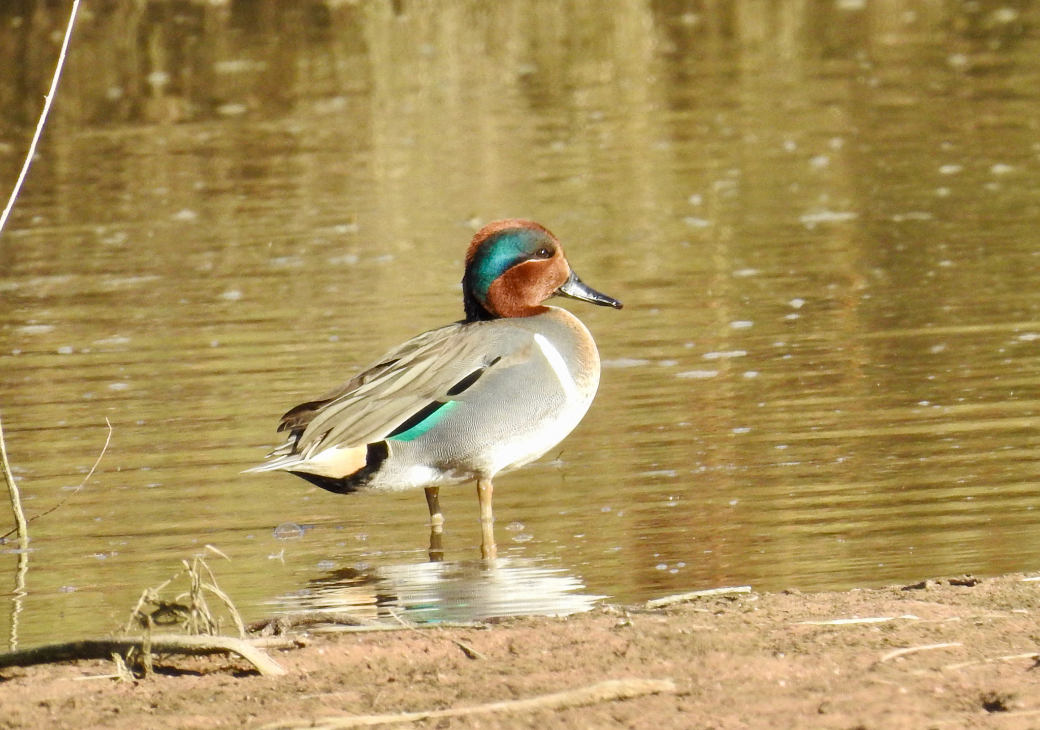 Green-winged Teal showing off the lovely teal of his wing
