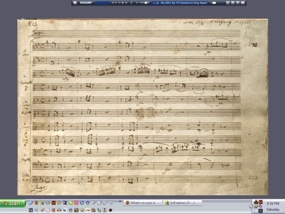 This is my current desktop. As you can see, it has the first page of a lovely autograph manuscript of a famous piece of music. I think it is large enough to read, so if anyone wants to take a stab at it, see if you can figure out what it is.