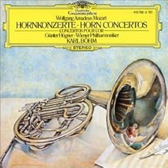 which is actually the only complete recording of Mozart's 4 horn concertos on the Vienna F horn, but it shows a double horn. To make it more silly, you can see a figure dressed in the style of Mozart's time mirrored in the bell. But in his time, there were no valve horns. Those were invented around 1814 but only came into use widely 20-30 years later. Schumann's Konzertstück was explicitly written for the valve horn. And the double horn was only invented in 1909.