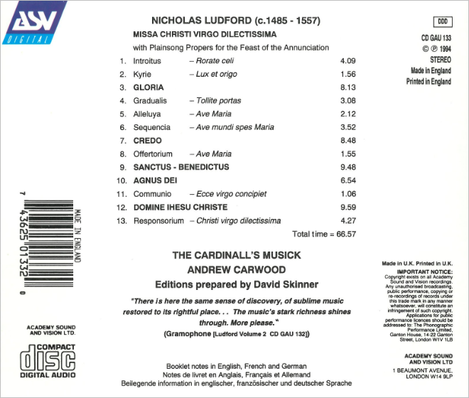 Cardinall's Musick perform Nicholas Ludford's Missa Christi Virgo Dilectissima. The Benedictus is absolutely astonishing.