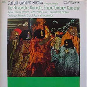 The Ormandy OJ box has four examples, three are completely unremarkable though one has a nice photo of Ormandy and Shostakovich. The album of Tchaikovsky 5 has a gruesome cover. The small print says it is 'Concert at the Academy of Music - Eugene Ormandy and The Philadelphia Orchestra'. Oil painting by Martin Jackson. Commissioned by Columbia Records in honor of the 60th Anniversary of the Philadelphia Orchestra. Shame the artist decided to use only one colour - brown.