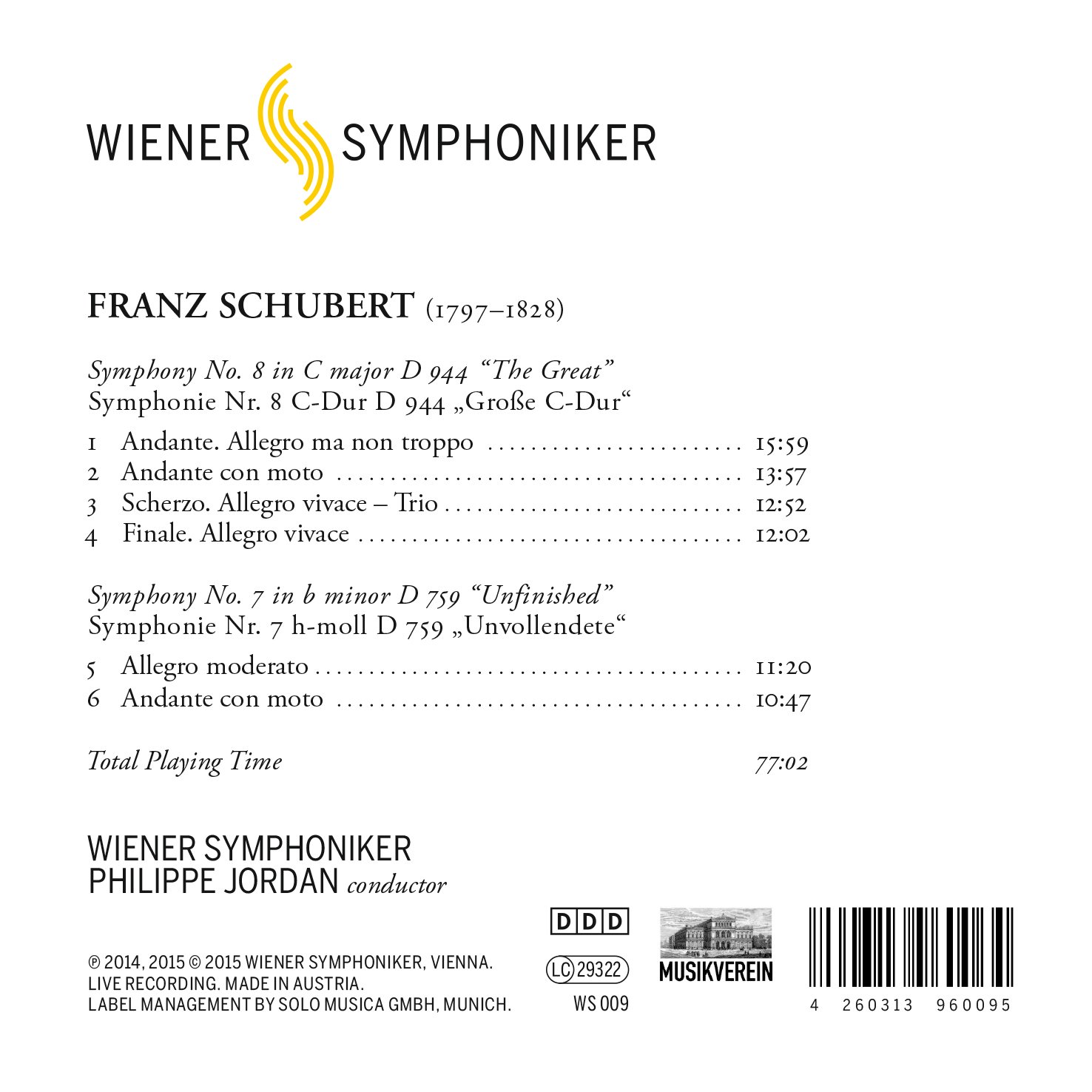Aufnahmeort: Musikverein Wien, 15. /16. November 2014 (,,Unfinished")