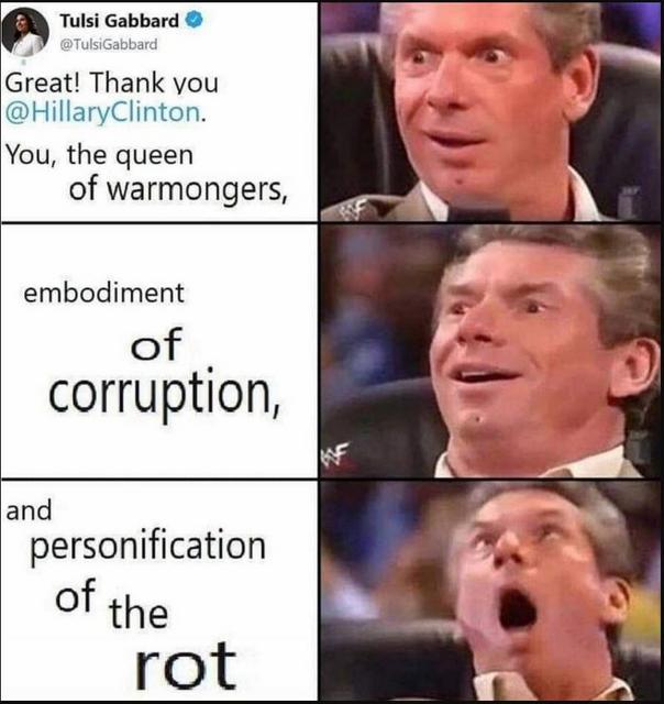 She's a good fit, then. I just took a little tour of Sputnik News, yesterday in fact. Apparently Hillary and Tulsi are the most important Americans alive, locked in a deathmatch.