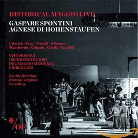 Since it's Opera d'Oro, there's no libretto. Reading the plot synopsis on Wikipedia, that may be a good thing. The plot is wildly unhistorical (Philip Augustus gets himself killed in a duel while pretending to be the Duke of Burgundy on an embassy to the Holy Roman Emperor) but the music is well handled. There are no bel canto fireworks (the opera was composed for the 1830s Prussian court) but a good deal of melodies and ensemble singing. Think Rienzi (Wagner admired Spontini's operas, so it's probably no coincidence.) By necessity the performance is heavily cut; the original supposedly ran over four hours.