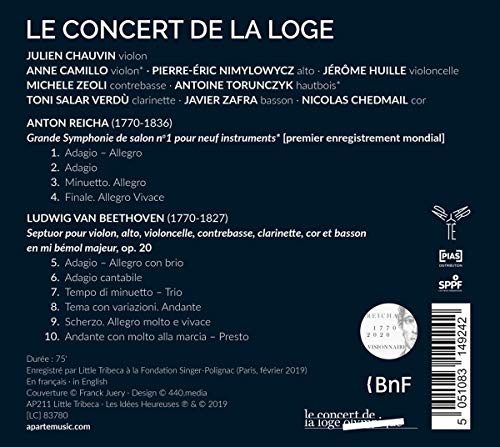 The Reicha is one of three works (the other two are for 10 instruments) that were known about but thought lost until they turned up in an archive donated to the Bibliotheque National de France. That was in 2017. One of the ten piece works was performed in the 1840s, but otherwise the three pieces have never been performed before now. Hopefully the other two will be recorded before long.