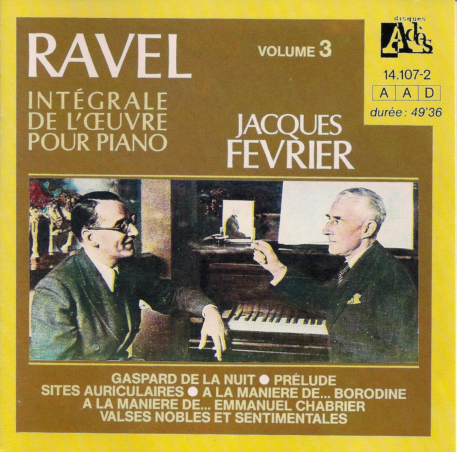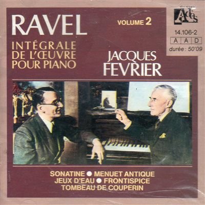 The young Jacques Février had a close relationship with Ravel at the end of the composer life (the pianist's father had befriended the composer when they were both students of Fauré). They were on a first-name basis ("tu" rather than "vous"), and Ravel turned to Février to perform he Concerto for the Left Hand when the three-year exclusivity awarded to Paul Wittgenstein had elapsed. It seems that Ravel left the hospital for some hours to listen to Fevrier's performance of the concerto on the radio, two days before the operation he never recovered from. Février also played the piano reduction of the orchestral part of the Concerto in G major when Marguerite Long was preparing the work with the composer.  Be that as it may, these recordings (which I only listened to distractedly on this occasion) didn't make as strong an impression as Février's superb Debussy did recently. They sound a bit effortful, and the phrasing doesn't seem to be very naturally flowing. I might get the elusive first volume of his series, but am in no hurry to do so. The second pianist in the duet pieces is Gabriel Tacchino.