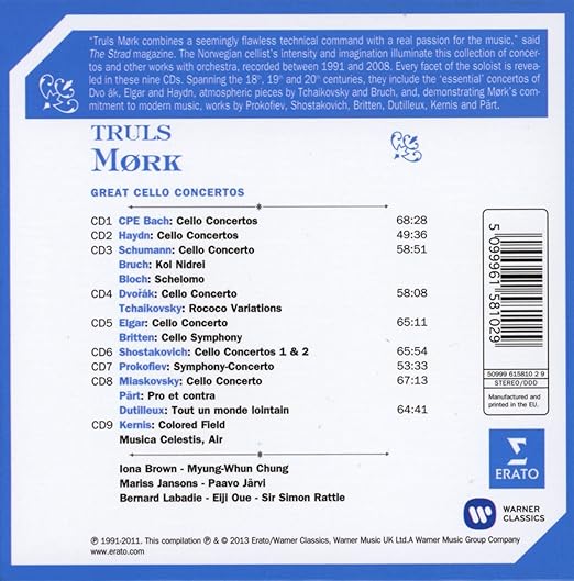 The Kernis (Colored Field) and Miaskovsky are beautiful works. Only Lutoslawski is missing among favourite cello concertos.