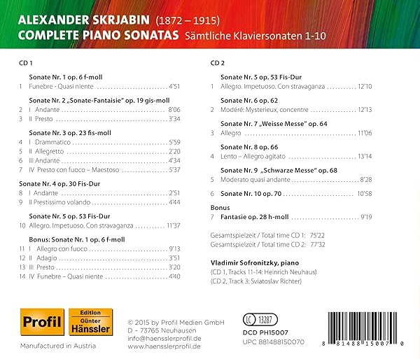 Regarding Sofronitsky, I've got the Brilliant Box, the Membran box (oncoming), and ~8 old Melodiya LPs. I still find the Scribendum attractive, though, in spite of the errors in his playing.