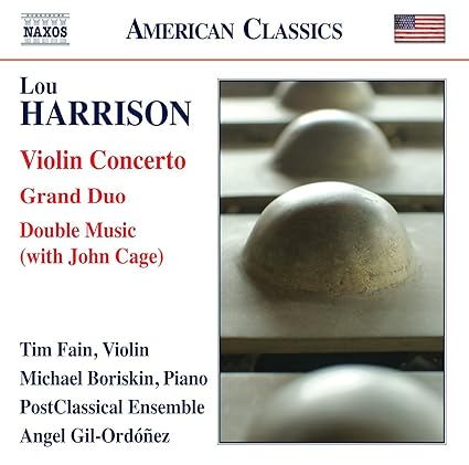 Whilst Qobuz had its Naxos sale, I took the opportunity to pick up this recording, in hi-res, for a whopping $3.60.  I always mean to get more Harrison, but I never do.  The only other recording I own is the Concerto for Organ and Percussion under the baton of MTT, and it's a doozy.  This disc is a bit less of doozy, but then Organ Concertos have a certain scale factor.  The Violin Concerto, pairing violinist Tim Fain with a gamelan orchestra, has many of the same features as the larger scale work, and it is just as successful.  Rhythmically incisive, bright, necessarily colorful, the lyrical string offers a stark and effective contrast to the clangorous but effective support.  It's unlike any other non-Harrison concerto in my collection, and it is something.  The Grand Duo for Violin and Piano from the late 80s, at about a half hour, is another beast.  It can best be described as a marriage of Prokofiev and Ives.  I happen to like such a musical marriage, though obviously others might not.  It would likely fall fairly easy on the ear of any 20th Century chamber music fan, and if maybe Fain uses a bit too much vibrato at times, such thoughts are fleeting.  Michael Boriskin's accompaniment is just dandy here.  The disc closes with Double Music with Harrison teaming up on compositional duties with John Cage.  It's a brief, repetitive swirl of percussion.  It's hardly a masterpiece, but it is nice enough for an occasional listen.  Performances and sound are all up to snuff.  It would be swell if Naxos did a complete Harrison collection.  It would force me to buy more.