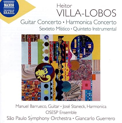 It's the third work on the disc, though. The disc starts with the Concerto for Guitar and Small Orchestra, and here the orchestral support sounds even more like what is on offer in the composer's symphonies, and the guitar is placed very forward so one can hear every note with clarity. Perhaps too much so, and it does become a bit too large in scale, with the low notes sounding almost like pizzicato cello notes on occasion, but otherwise it is as fine a Guitar Concerto as I have heard, which is not too terribly many. It turns out, though, that as good as the Harmonica Concerto is, it's the chamber music works that are the real draws. Both offer unique, not to say bizarre, instrumental combinations. The Sexteto Mistico does as good a job at creating a mystical soundworld I have heard in its brief, just under eight minute duration. Better yet, which is saying something, is the Quinteto Instrumental that closes the disc. Bright, colorful, light, open, eminently tuneful and achingly beautiful in parts, it entrances. Again, there's nothing quite like it.