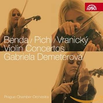 Gabriela Demeterová is one of those violinists I've long meant to listen to far more than I actually have.  I've heard some snippets on YouTube, but this is the first proper full-length recording I've heard, in this, its reissue guise.  Looks like I have foolishly not been listening to a fine fiddler.  The works, one from a composer I've at least heard and heard of before (Benda) and two I've not (Pichl and Vranický) are all classical era violin concertos of quite fine accomplishment.  While not perhaps as much fun as the last couple from Mozart, or as well crafted as those of Haydn, or with as beautiful a solo violin part as that by Pleyel (though this is likely due to the stupid beautiful playing of Sebastien Bohren in the recording that I know), all three major key works sound bouncy and fun in the fast movements and deeper and more beautiful in the slow movements.  The Benda, if perhaps predictable, benefits from Demeterová's ability to float a musical line nearly as beautiful as Bohren's in the slow music.  The pretty, petite Pichl piece presents plenty of gently beautiful music for the listener to savor.  While the last movement, in particular, has a bit of drive, as recorded and performed it's a light piece, and one that almost seems to presage romanticism with its meltingly beautiful music.  The lion's share of the credit goes to Demeterová who never produces anything other than a beautiful, pure tone.  She keeps things constrained yet expressive, contained yet exuberant.  This is the very model of a chamber concerto.  The more vibrant, vivacious Vranický verily veers into Mozartian territory.  A fairly weighty, extended orchestral introduction segues to Demeterová's unfailingly lovely playing.  That unfailing loveliness permeates the slow movement, which ends up sounding bold and rich such that one can easily tell this comes from the tail end of Haydn's era and the beginning of Beethoven's.  Nice.  The Alla Pollacca closing movement infuses some energy and some very dance-like rhythm into the mix.  Not the last word in super-charged music, and not up as spunky as the closing of Mozart's last violin concerto, it nonetheless falls squarely in the smile-on-face composition category.