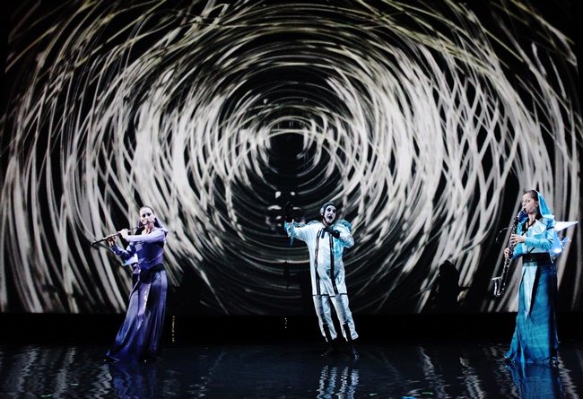 for tenor vocalist, trumpet with ring-modulation, basset-horn, and flute/alto flute with ring-modulation