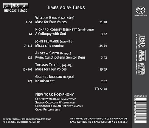 "You may not think the world yearns for another Byrd 4-part Mass recording - that is, until you hear these four male voices sing it. Sure, you've heard the Tallis Scholars' reference version, but have you ever heard it performed by just four voices, ideally matched, of uniquely compatible timbre, combined into such a richly resonant sound? ... The sound on this SACD recording, from a Swedish church, is consistent with BIS's usual high standard. Recommended with the assurance that you will listen to this disc often.: --ClassicsToday.com, David Vernier, September 2013