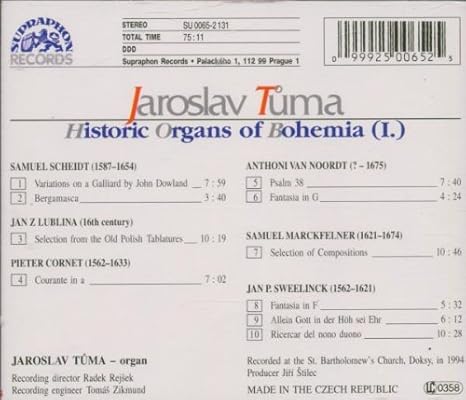 A colourful and relatively light bohemian organ at Doksy, played here by Tuma in what is for me an attractive programme of early baroque  pieces. As with the Dubrovnik organ mentioned above, and not the case, unfortunately with his Pachelbel CD, Tuma is at his best when the organ isn't too big and heavy. He plays with a panache which he doesn't always find. Very glad to have this one.