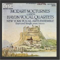 The 9 vocal quartets are not in the Big Box, for reasons that i don't understand at all. They are late works, and very well spoken of. This disk, on Arabesque, also includes Mozart's notturnos, a lovely set of songs that he wrote for performance among his friends. Some good performers on this disk, I can't wait until it comes up in the queue. Perhaps some of you have a different recording of these works. I'm interested to hear about it, since they are apparently thin on the ground