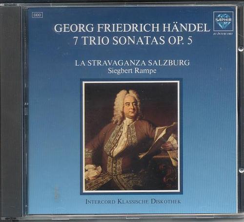 There are three opus numbers but probably none of these publications was supervised by Handel. The trio sonatas op.2 and op.5 are all authentic works, although most of op.5 are arrangements from orchestral pieces (like ouvertures or ballett pieces from operas). My rec for opus 5 is Stravaganza Salzburg (with Rampe on harpsichord). They use traverse flute in two sonatas.