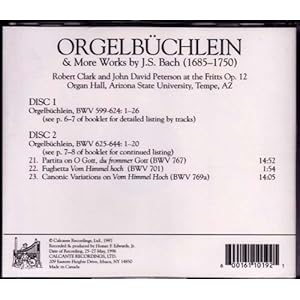 I'm having a harder time with the second, Robert Clark and John Peterson playing Orgelbuchlein. It just seems a bit too bland, and I'm not sure I like the sound of the organ much, I can't get caught up in the performance as Don in his review (on bachcantatas.org) found he could. It's the sort of thing I'm going to have to go back to, maybe one day I'll open up to it.
