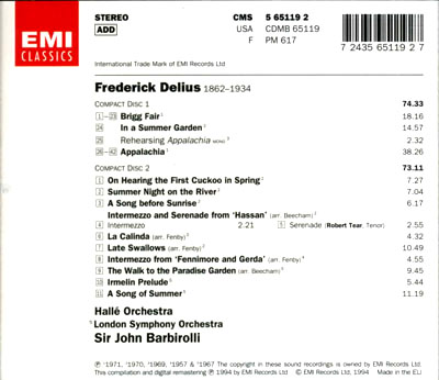 Disc 2 from the Barbirolli Delius box: I'm walking to paradise at the moment: